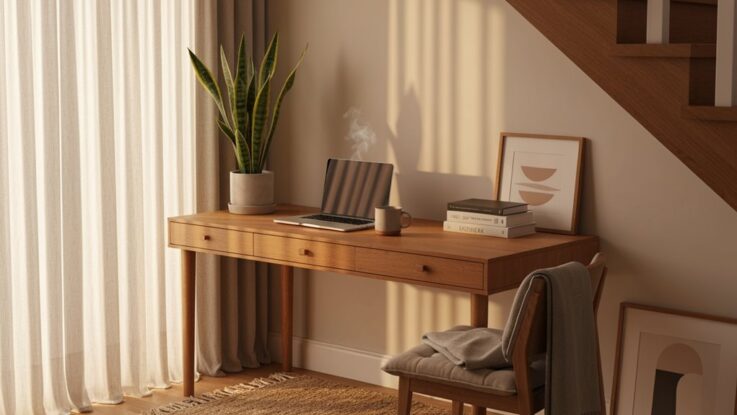 Ein gut gewählter Schreibtisch kann eine ungenutzte Nische in ein warmes, produktives Heimbüro verwandeln, das sich wie ein Teil des Hauses anfühlt. Rechteckige und L-förmige Schreibtische definieren Bereiche für konzentriertes Arbeiten und Multitasking, während Eck- und kompakte Wandschreibtische das Beste aus engen Räumen herausholen. Warme Hölzer, matte Metallbeine und weiche Textilien sorgen für visuellen und akustischen Komfort. Schlanke, vertikale Aufbewahrung hält Oberflächen frei und stilvoll. Durchdachte Platzierung in der Nähe von Licht und ein paar bedeutsame Accessoires vervollständigen die Szene, und weitere praktische Tipps folgen.